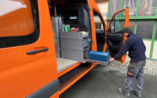 Wir investieren laufend in neue Fahrzeuge, Baumaschinen und Ähnliches, um weiterhin ein zuverlässiger und leistungsstarker Bau-Dienstleistungserbringer für unsere Kundschaft zu bleiben. Mit dem neuen Lieferwagen und seiner Ausstattung wird vor Ort gewartet und repariert (uf bärgerisch „gflikt“). Gerhard, langjähriger Bühler Bau Werkstattchef, ist zufrieden damit! 😊